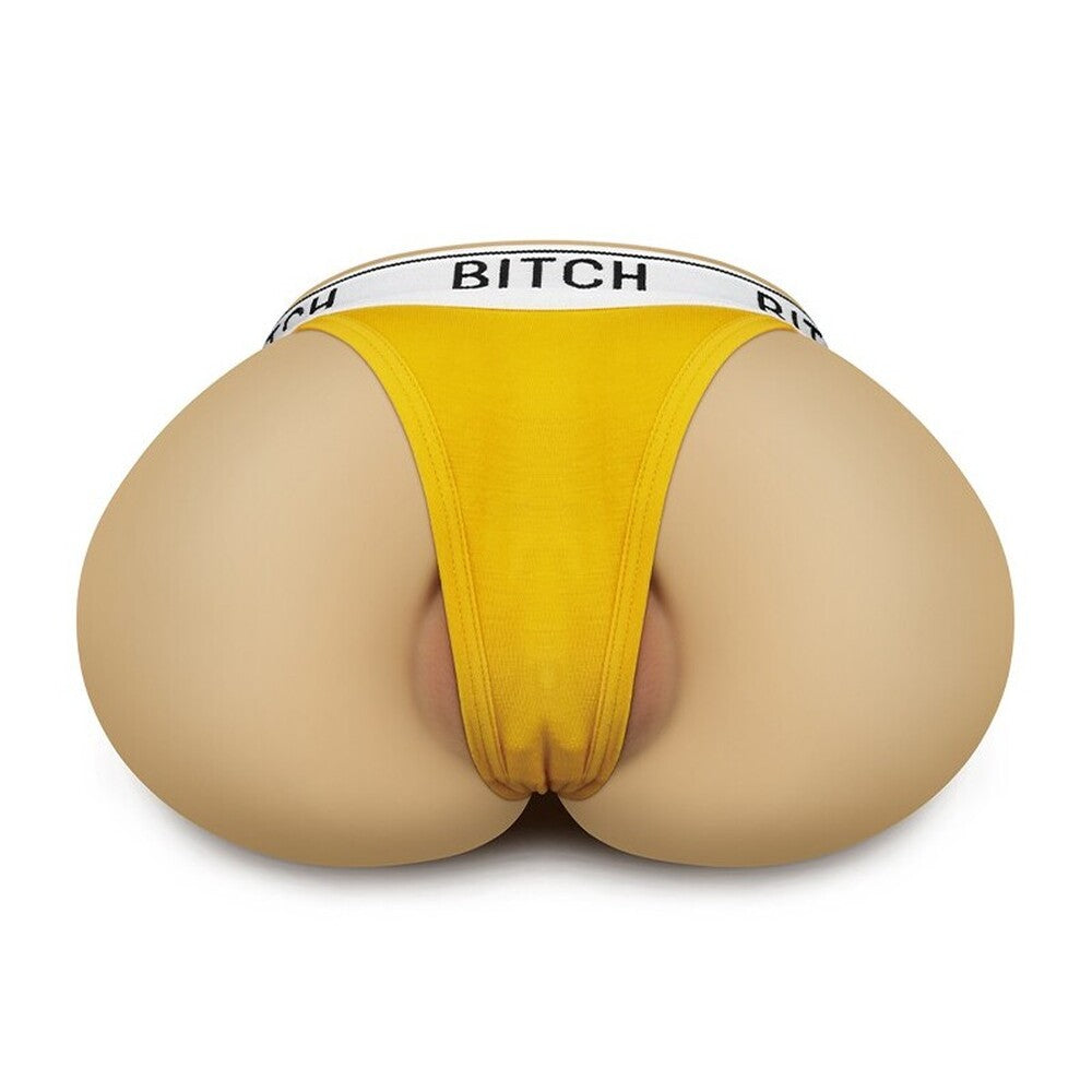 This masturbator is made of realistic, skin-friendly material which mimics the human body and provides an extremely realistic experience. The designed vaginal tunnel has a nest of nubs which are clearly noticeable when inserting the penis. Included is a bitch thong with a full cheek exposure design that can be removed from the masturbator as well.We advise using plenty of lube to ensure a smooth entry. The diameter of the holes in the masturbator might seem tight for the first time, but the elasticity will increase over time.Insertable depth vagina tunnel 11.94 cmInsertable depth anus tunnel 12.95 cm